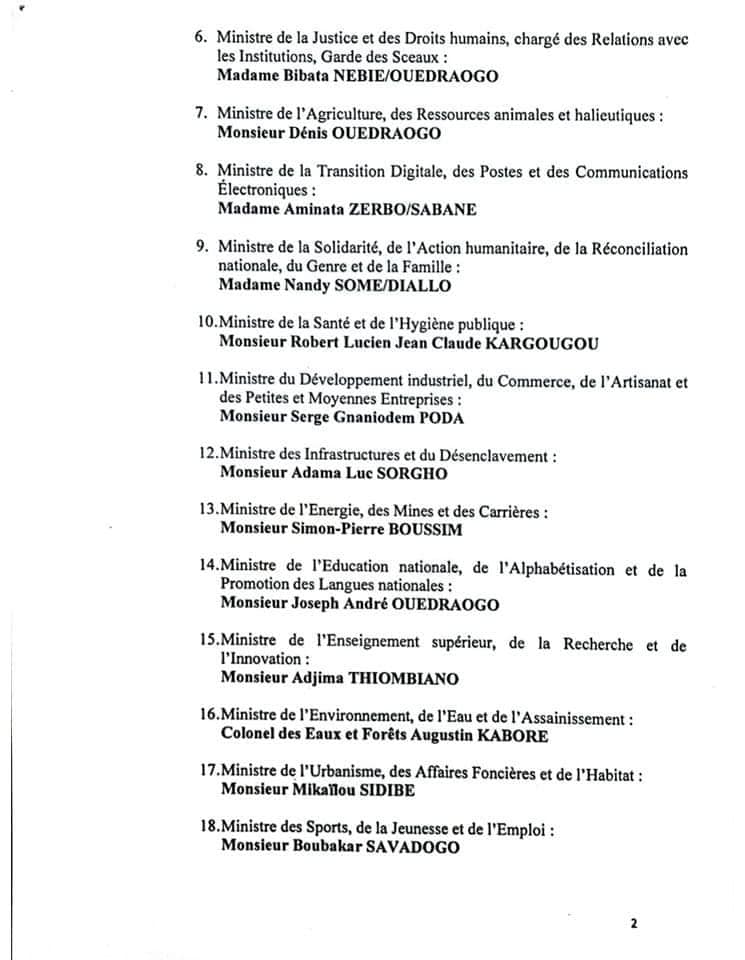 Le Gouvernement du Burkina Faso est composé ainsi qu’il suit:
